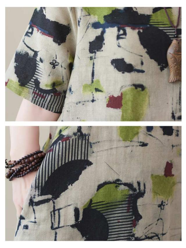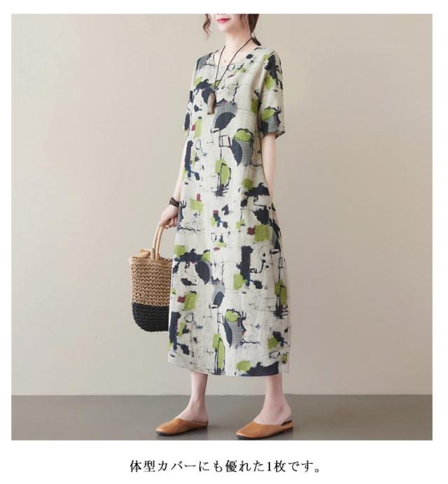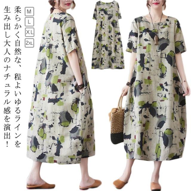 総柄ワンピース ロングワンピース レディース 夏 総柄 半袖ワンピース 綿混 ナチュラル 薄手 涼しい 夏服 ラウンドネック ワンピ 大きいサイズ ロングワンピ おしゃれ ゆったり 森ガール リゾートワンピース 体型カバー 大人可愛い きれいめ 大きいサイズ 送料無料