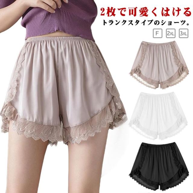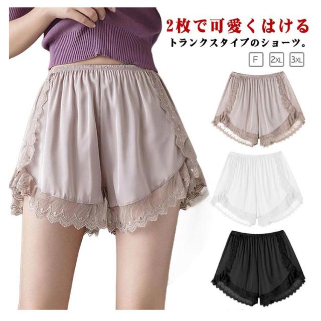 選べる2枚セット トランクス 女性用 レディース ペチパンツ ペチコート ショーツパンツ 3分丈 ショートパンツ ボクサーパンツ 締め付けない レディース レース 下着ペチコート オーバーパンツ スカートの下に履くインナー ロング 大きいサイズ 送料無料