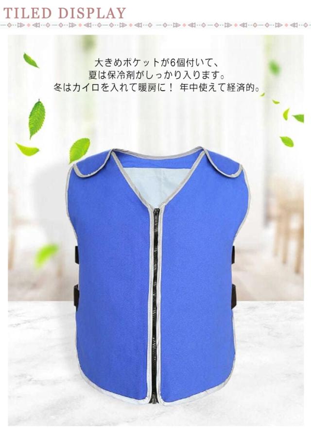 | 高温作業用 冷却ベスト 大きめポケットが6個付いて、夏は保冷剤がしっかり入ります。冬はカイロを入れて暖房に! 年中使えて経済的。 | |