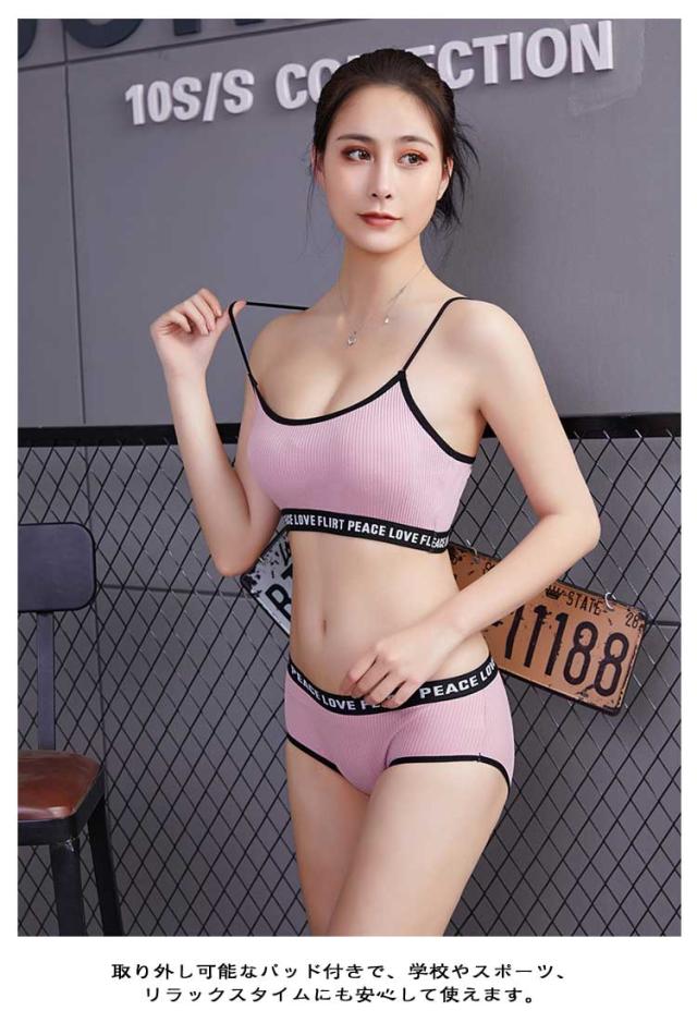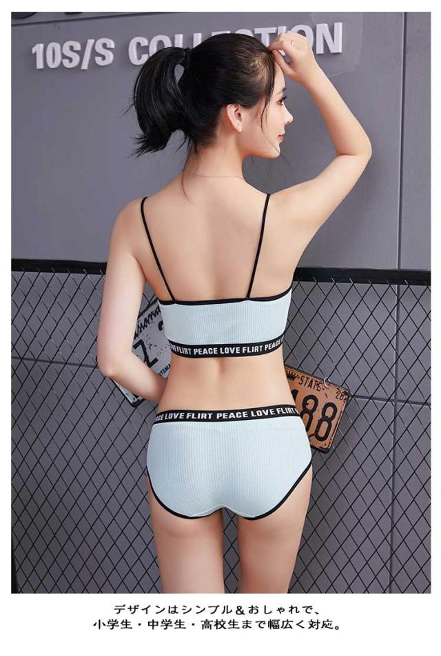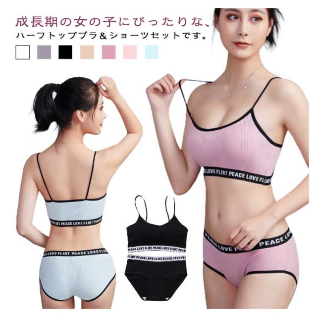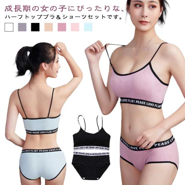 上下セット ブラジャー ショーツ ノンワイヤー ハーフトップ ジュニアブラ セットアップ インナー ファーストブラ スポーツブラ 下着 小学生 中学生 高校生 パッド付き ナイトブラ 運動 ヨガ お洒落 送料無料