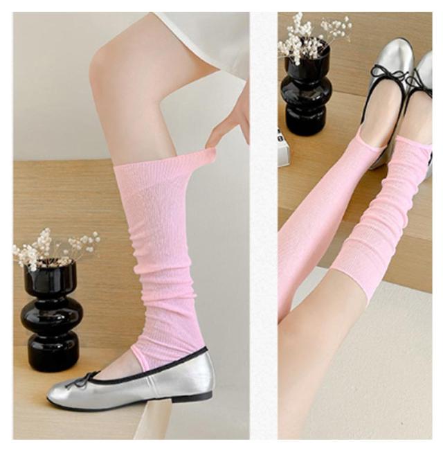 レッグウォーマー 春夏 薄手 ロング丈 トレンカ かかとあき ニーハイ 日焼け防止 冷房対策 リブニット ルーズソックス 伸縮性 紫外線対策 UVカット 冷え対策 夏物 通学 送料無料