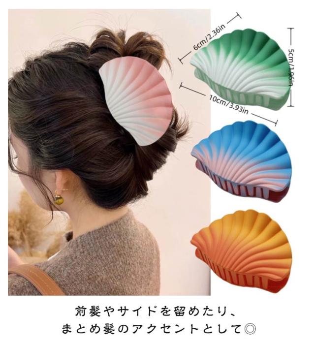 | シェルモチーフのヘアクリップ・3個セット。 海をイメージさせるおしゃれなデザイン♪ 前髪やサイドを留めたり、まとめ髪のアクセントとして◎ しっかり髪の毛をつかむホールド力があるので毛量が多い方でも大丈夫! カジュアルな普段使いから、オフィスや通学、パーティーや結婚式など、様々なシーンで大活躍してくれます! | |