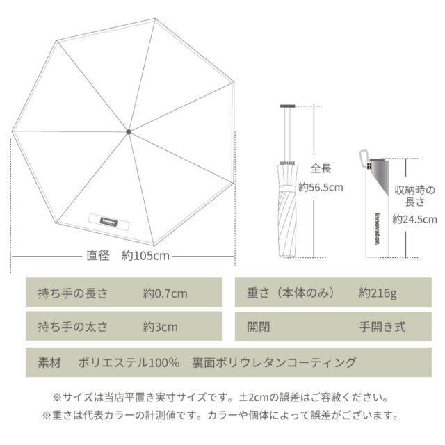 折りたたみ傘 innovator スリム 晴雨兼用 手開き式 60cm ( 傘 折り畳み傘 メンズ レディース かさ おしゃれ 北欧 無地 雨傘 UVカット 100% 撥水 遮熱 遮光 日焼け防止 UV対策 暑さ対策 カサ アンブレラ 通勤 通学 カラビナ付き )