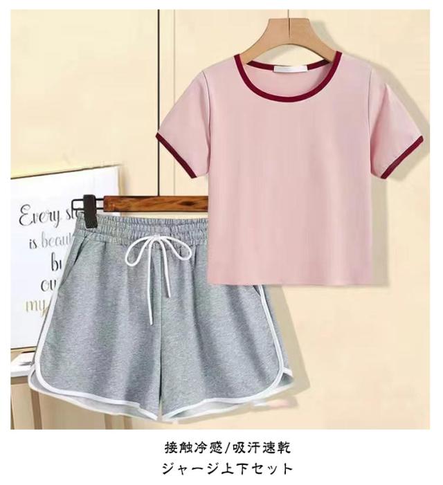 ジャージ 半袖 ショートパンツ 接触冷感 レディース 通気性 カジュアル 短パン 速乾 吸汗 ジャージ 薄手 涼しい スポーツウェア 上下セット ランニングウェア Tシャツ ひんやり 軽量 ジム ヨガ 部屋着 ルームウェア