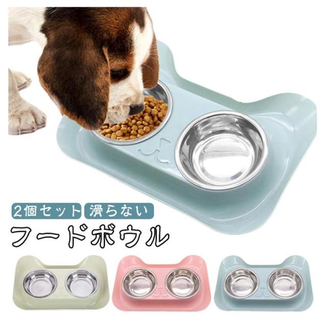猫 猫用 セット 2個セット フードボウル 食事台 犬用 犬 食器台つき 食器 フード入れ 水入れ えさ入れ 滑らない フードボウル 食器台 シンプル インテリア おしゃれ ステンレス製 取り出し可能 洗える