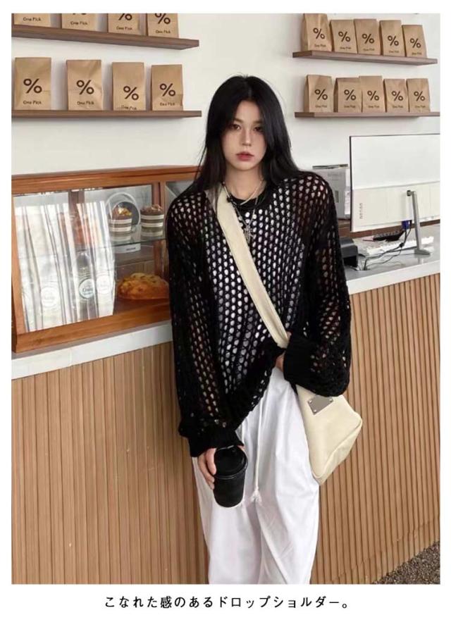 | レディ感とカジュアルさどちらも楽しめる、透かし編みのサマーニット。 透けすぎず大人の肌見せコーデも上品にキマル、今季一押しのトレンドアイテム。 レイヤードしやすいゆるっとサイズ。 すっきりとしたネックライン。 こなれた感のあるドロップショルダー。 | |