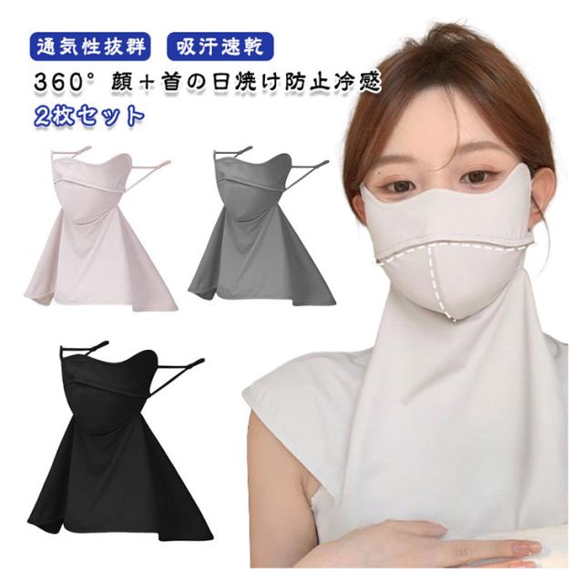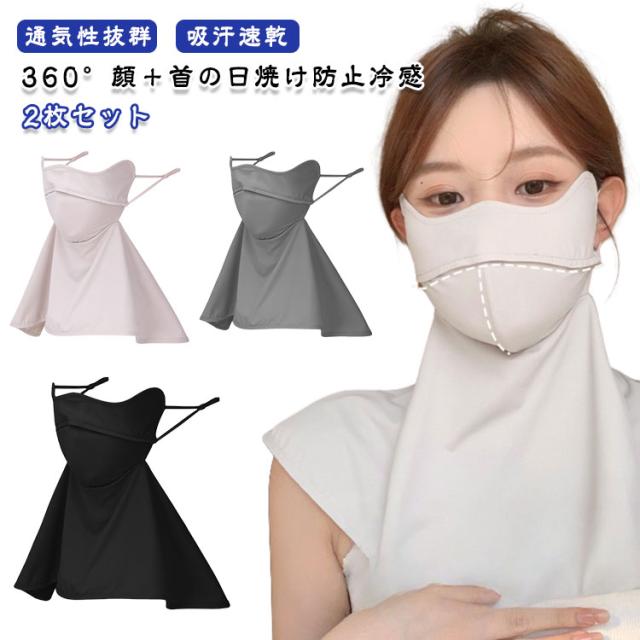日焼け対策 日焼け防止 UV UVカット UVマスク 接触冷感加工 フェイスカバー 2枚セット 息苦しくない 顔 日焼け止めマスク フェイスガード ネックカバー UV対策 洗える紫外線対策 通気性 遮熱