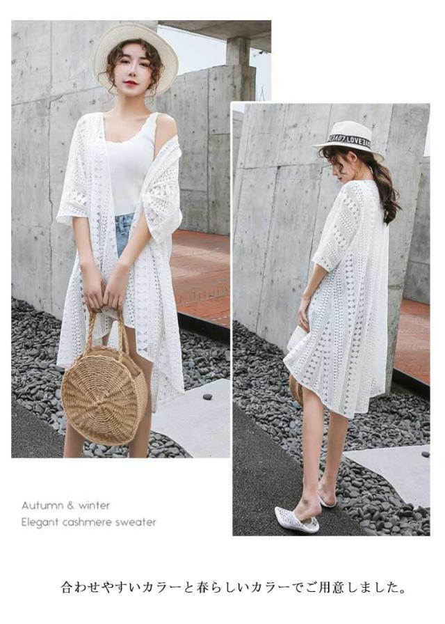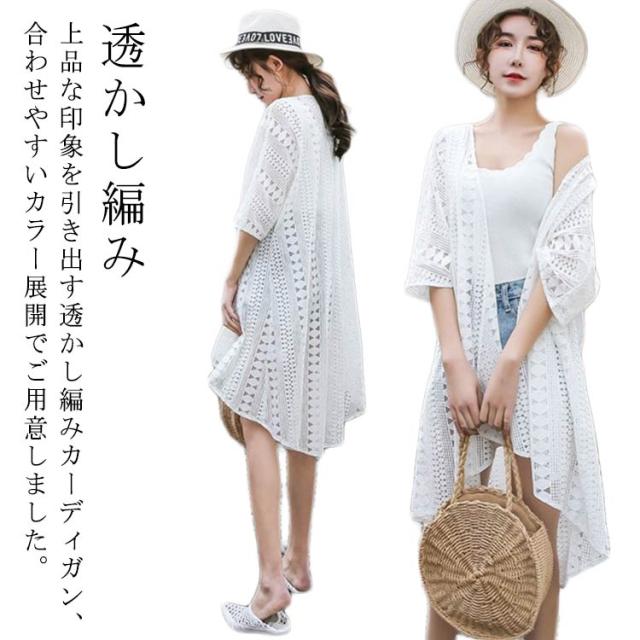 UV 透かし編み ロングカーディガン 透かし編み ライトアウター レースカーディガン サマーカーディガン 紫外線対策 UV対策 冷房対策 羽織り レディース トップス 日焼け防止 透け シンプル カジュアル 海 リゾート