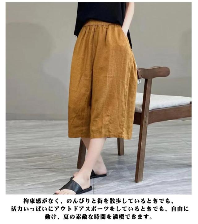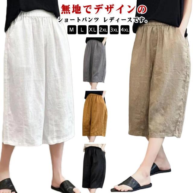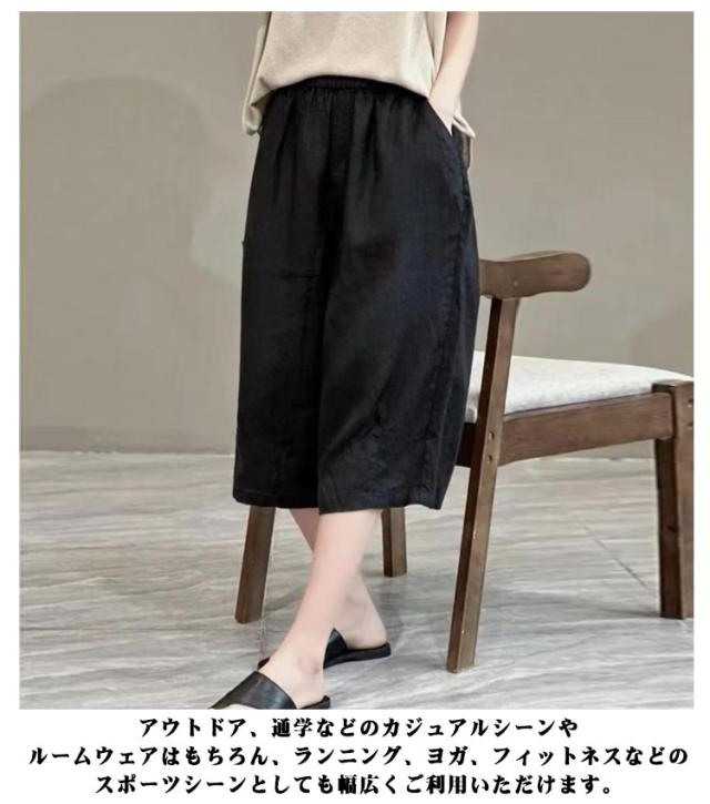 ハーフパンツ 涼しい 春 ワイドハーフパンツ 夏 ショートパンツ かわいい ボトムス レディース 7分丈 薄手 シンプル 無地 七分丈 ゆったり 大きいサイズ ウェスト総ゴム イージーパンツ 体型カバー ルームウェア 部屋着 短パン パンツ ブラック おしゃれ