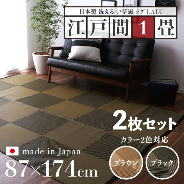 い草風ラグ 2枚セット LALU 江戸間1畳 幅87 奥行174cm ブラック ブラウン 日本製 国産 洗えるペット対応ラグ 畳風ラグ 夏 ラグ 洗える ペットラグ ラグ ペット用 防水 軽量 傷防止 和モダン ラグマット ゴザ ラグマット ゴザ 寝ござ 夏ラグ 夏用