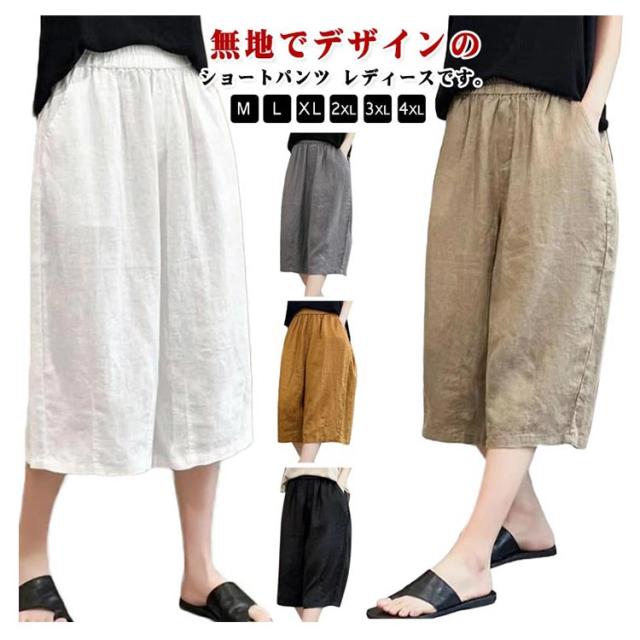 無地 ワイドハーフパンツ 春 夏 ハーフパンツ 涼しい 7分丈 ゆったり ショートパンツ 薄手 かわいい 体型カバー レディース ボトムス 七分丈 大きいサイズ ウェスト総ゴム イージーパンツ シンプル ルームウェア 部屋着 短パン パンツ ブラック おしゃれ