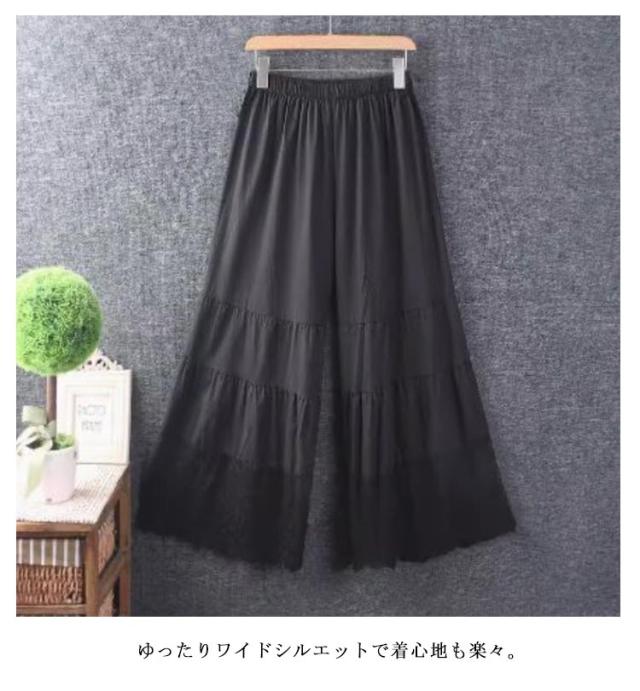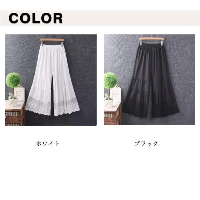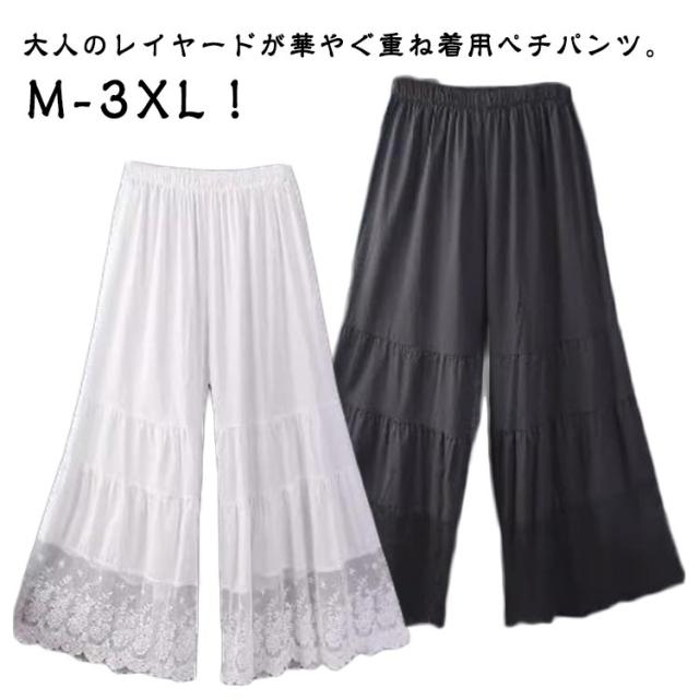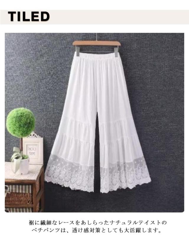 透け感 ワイドパンツ ワンピース下 重ね着 裾レース 九分丈 ロングパンツ ペチパンツ 森ガール 春夏 ペチパンツ ボトムス 下着 ナチュラル レイヤード インナー ペチコート パンツ 透け対策 大きいサイズ