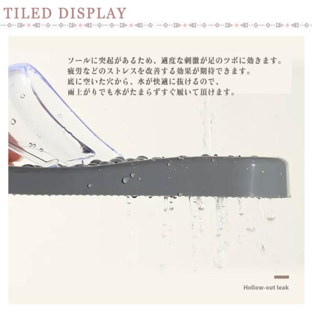 | 男性サイズ!マッサージバススリッパ ソールに突起があるため、適度な刺激が足のツボに効きます。疲労などのストレスを改善する効果が期待できます。 底に空いた穴から、水が快適に抜けるので、雨上がりでも水がたまらずすぐ履いて頂けます。 滑りにくく歩きやすいので、浴室のバススリッパや、 プールサイド、水遊びなど…様々なシーンで活躍してくれます。 コンビニなど近所の外出に使用して頂けます。 | |