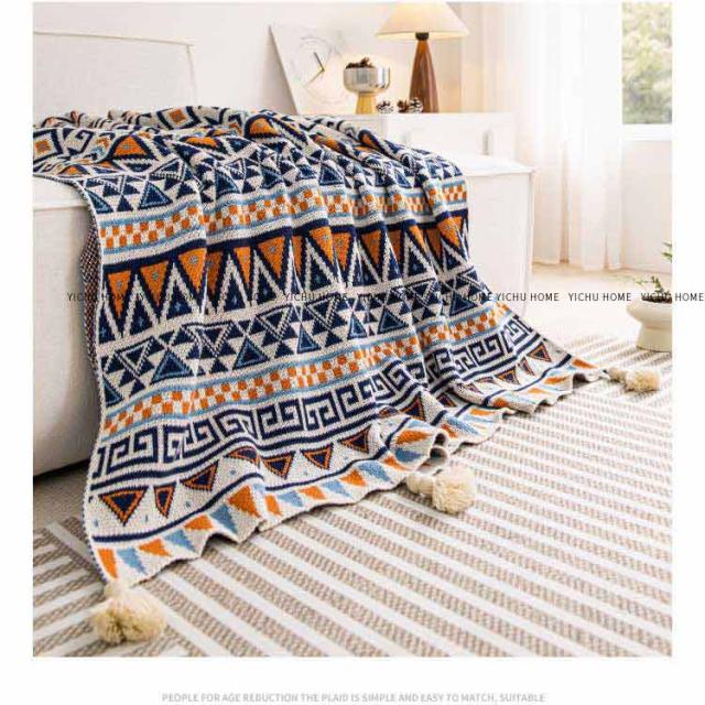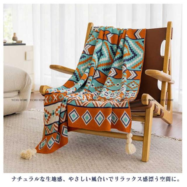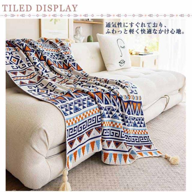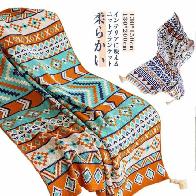 膝掛け 大判 フリンジ付きニットブランケット 大判ブランケット 総柄 柔らかい ブランケット 北欧 ひざ掛け おしゃれ 毛布 エスニック風 春夏 秋冬 マルチカバー マルチクロス タオルケット お昼寝 冷房対策 寝具 ギフト プレゼント オールシーズン