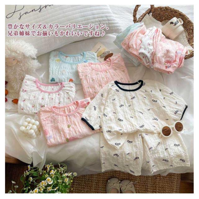 夏 パジャマ 部屋着 薄手 キッズパジャマ ベビー キッズ 女の子 男の子 上下セット 子供パジャマ 総柄 かわいい 寝巻 ウエストゴム 春 子供 ルームウェア パジャマ ジュニア ナイトウエア ベビーパジャマ ルームウェア 可愛い プレゼント