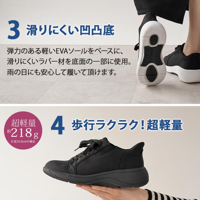 ・片足重さ約218g(24.0cm計測)の超軽量設計。軽いので足に負担をかけにくく、お散歩やお出かけにぴったり。