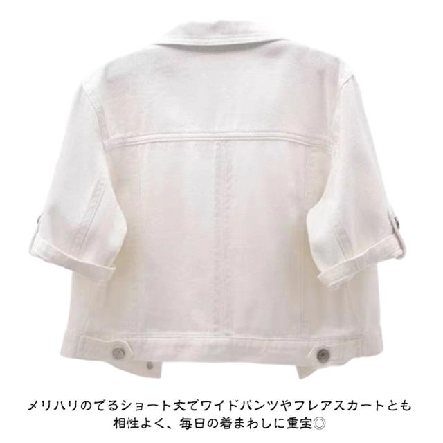 | 【厚すぎず、薄すぎない綿素材、手首を華奢に見せる半袖デニムジャケット】 ロングシーズン活躍する半袖デニムジャケット。 胸ポケットや金属ボタンやゴールド調ステッチなどのディテールにこだわりました。 肌に優しいソフトな風合いで着心地抜群。 スタイルもよく見せてくれるコンパクトなシルエットだから、カジュアルすぎるitemが苦手な方にもオススメ。 メリハリのでるショート丈でワイドパンツやフレアスカートとも相性よく、毎日の着まわしに重宝◎ | |