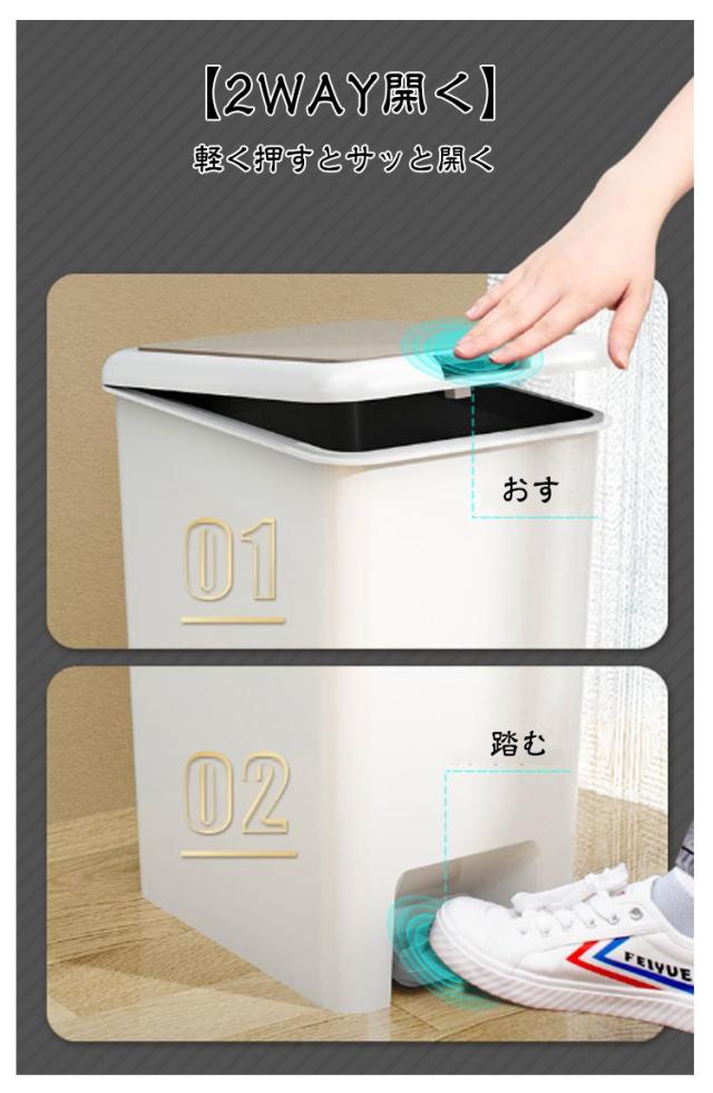 | 【6.5L 8L 10L 15L】【蓋付き】【2WAY開く】 スリムなダストボックス、省スペースでスッキリ置ける シンプルなデザインなので、どんなシーンにもマッチする。 オフィスのデスクサイドやデスク下、トイレや洗面所などの限られたスペースでの設置にもおすすめです。 袋止め付きでポリ袋の脱着も簡単。 両手がふさがっていても安心な軽く踏んでサッと開くペダル付き 【2WAY開く】軽く押すとサッと開く 間口が大きくて捨てやすい ビニール袋をカバーで隠す構造 フタ付きで、生ゴミ、おむつ、ペットシーツなどニオイが出るゴミを入れるのに最適です。 | |
