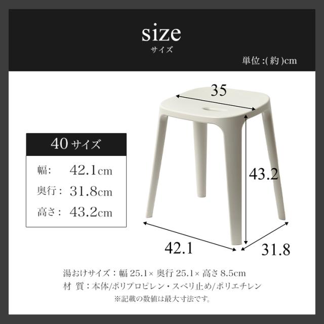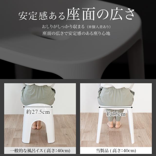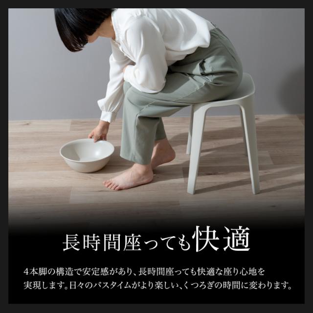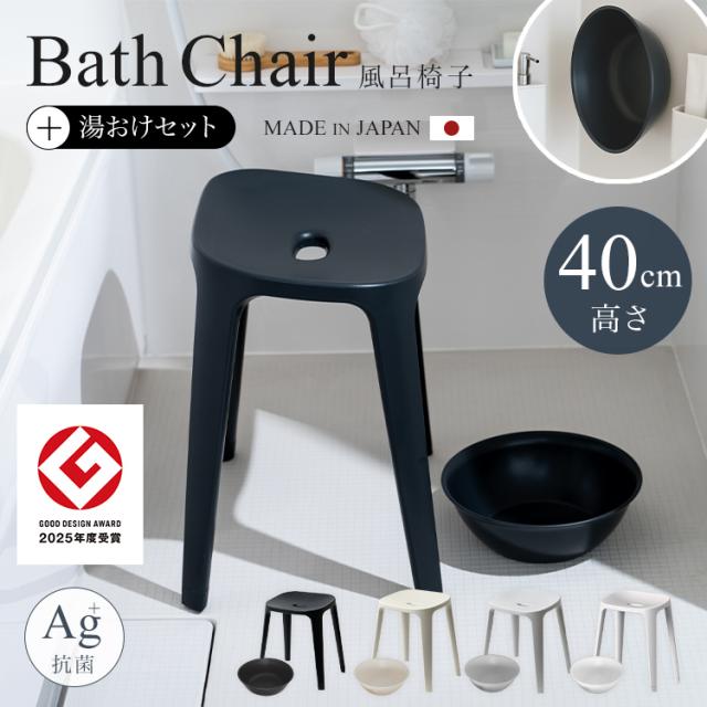 座り心地と清潔さにこだわったバスチェア。座面が広く座り心地が抜群!4本脚形状だから、通気性が良く、カビにくく、清潔さを保ちます。裏面に、余計な凹凸がないので、ふき取り掃除も簡単に。浴槽に引っ掛けて乾かす事も出来ます。浴室の壁で浮かせておけるマグネット湯桶とのお得なセット♪※こちらはマグネット湯桶セット販売ページです。■製品サイズ<40cmタイプ>サイズ : 幅42.1×奥行31.8×高さ43.2cm<マグネット湯桶>サイズ : 幅25.1×奥行25.1×高さ8.5cm■素材<バスチェア>本体:ポリプロピレン すべり止め:ポリエチレン日本製<マグネット湯桶>本体:ポリプロピレン ラバーマグネット中国製