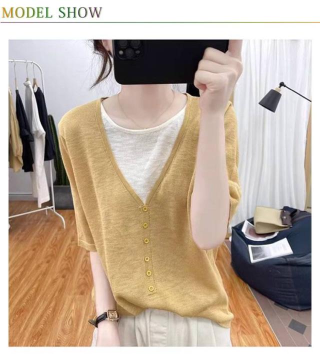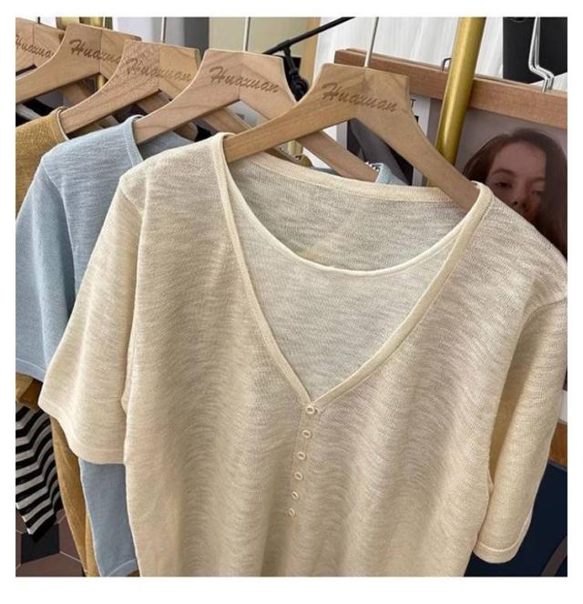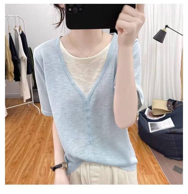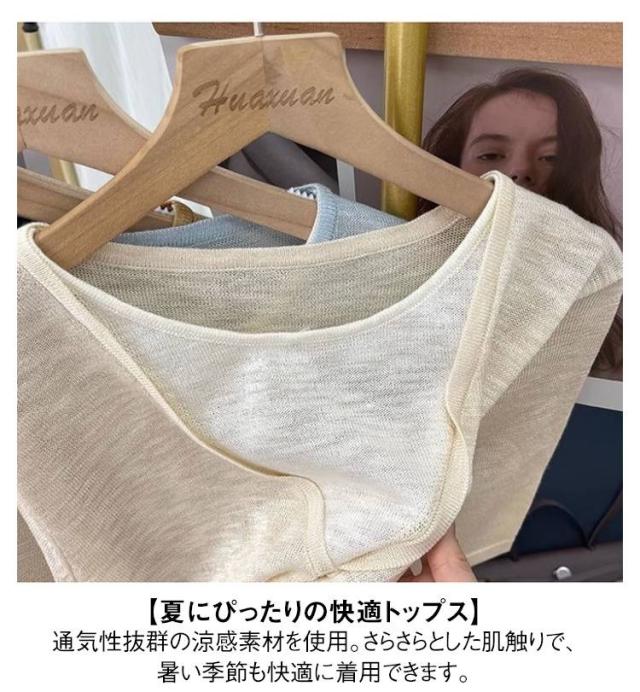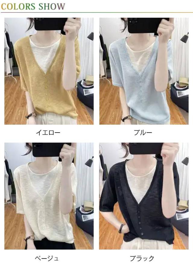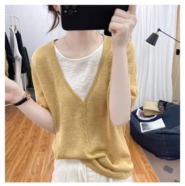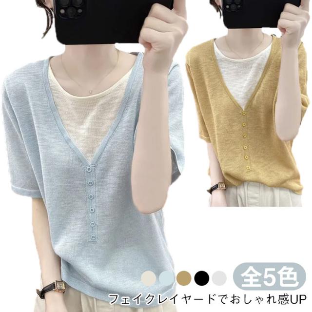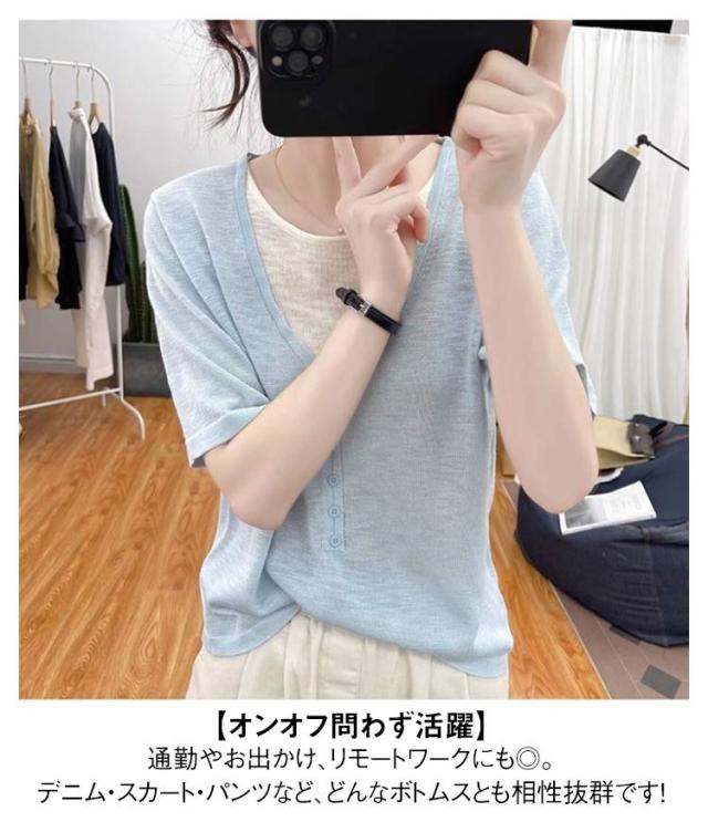 レディース Vネック レディース 半袖Tシャツ トップス 半袖 薄手 アイスシルク ニットソー サマーニット tシャツ ゆったり 可愛い 夏服