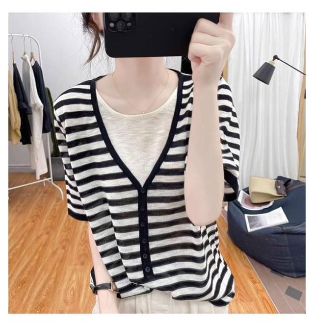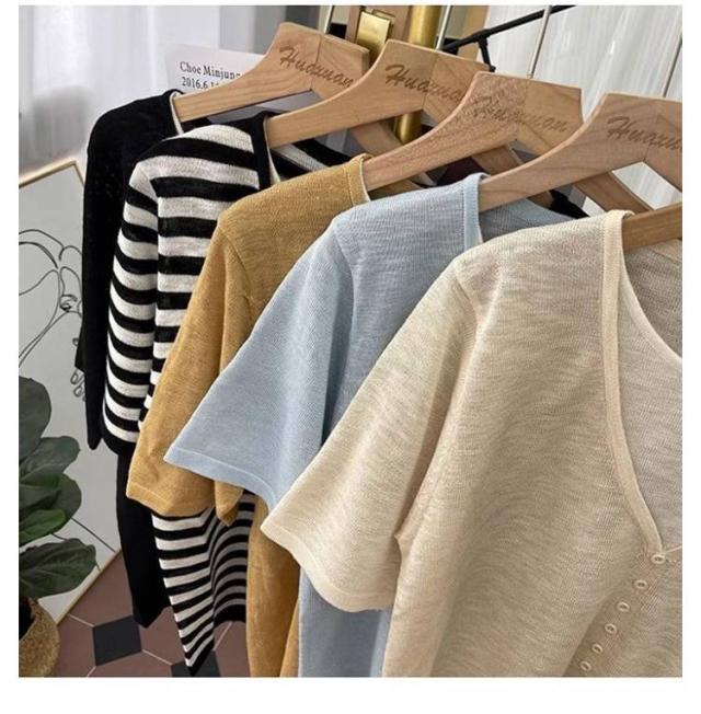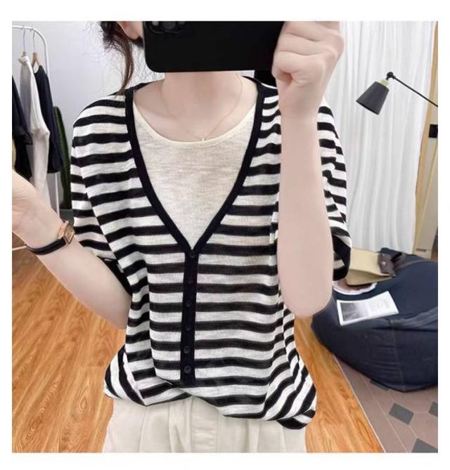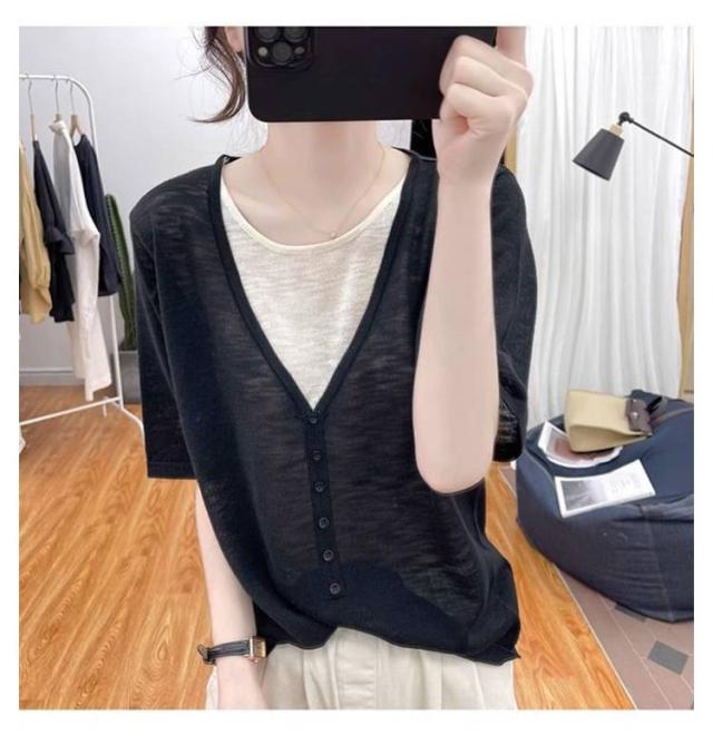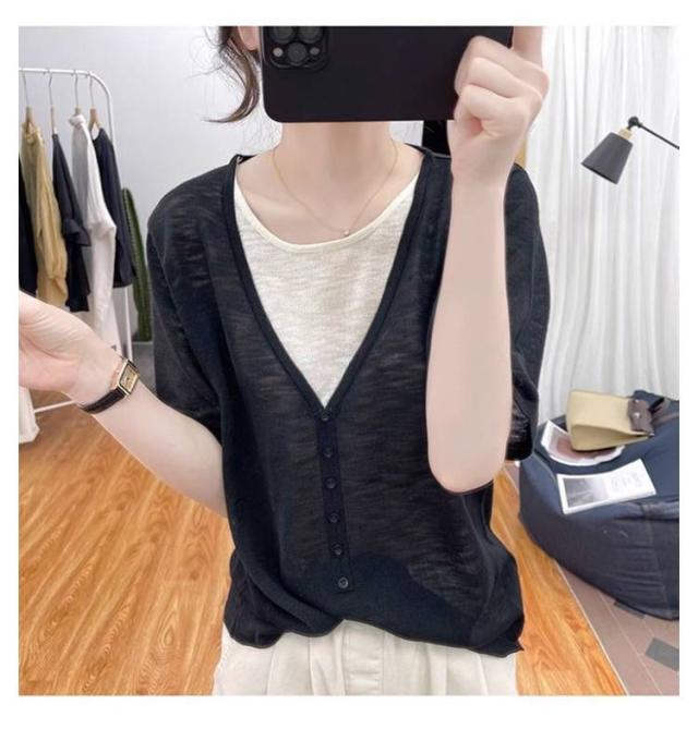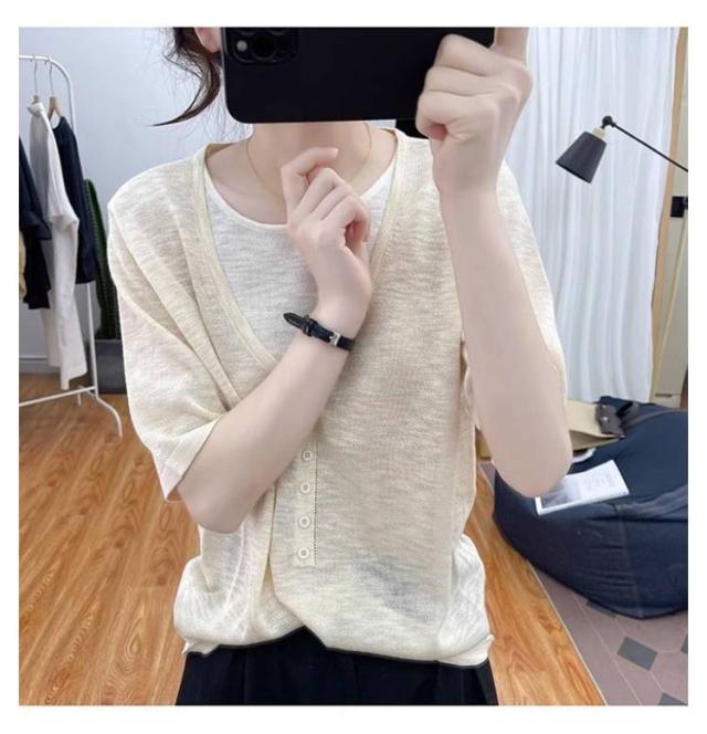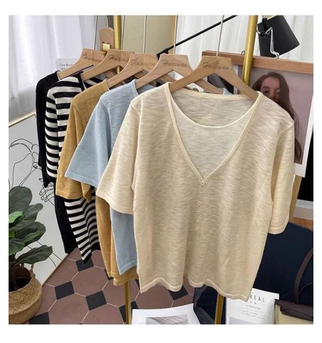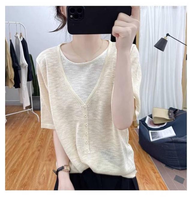 レディース Vネック レディース 半袖Tシャツ トップス 半袖 薄手 アイスシルク ニットソー サマーニット tシャツ ゆったり 可愛い 夏服
