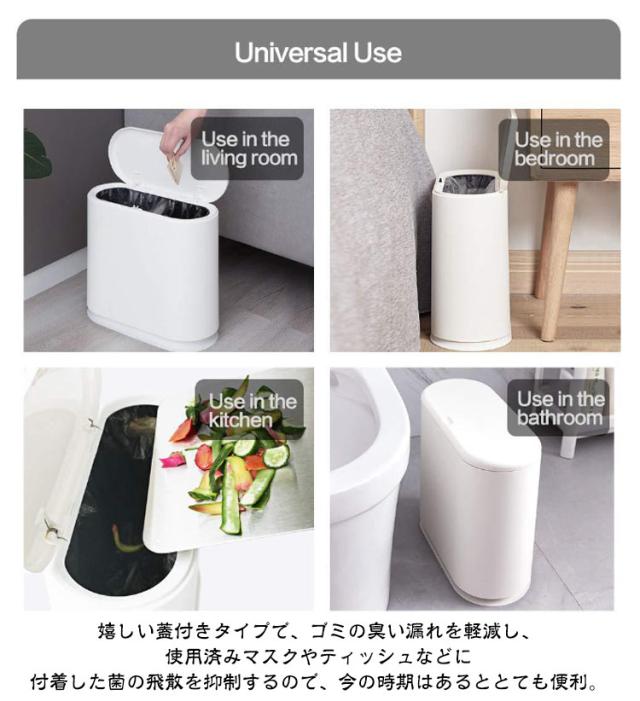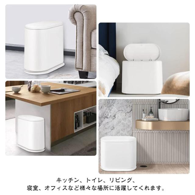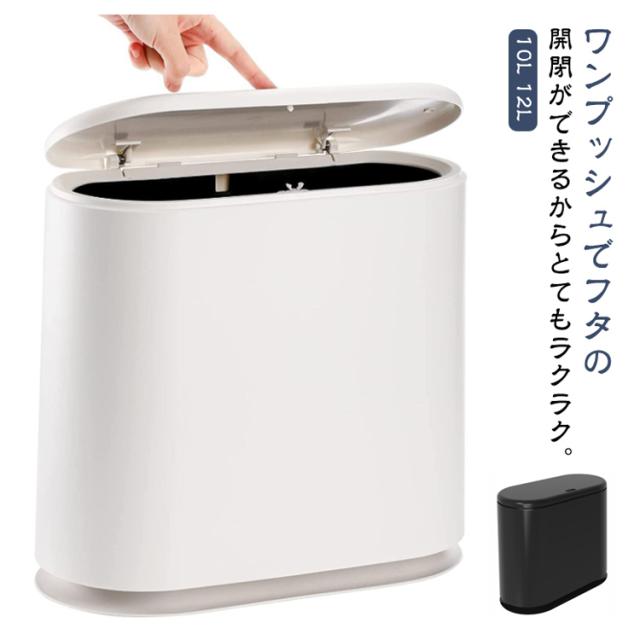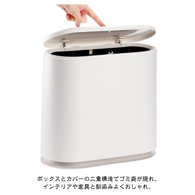 | ワンプッシュでフタの開閉ができるからとてもラクラク。 嬉しい蓋付きタイプで、ゴミの臭い漏れを軽減し、使用済みマスクやティッシュなどに付着した菌の飛散を抑制するので、今の時期はあるととても便利。 ボックスとカバーの二重構造でゴミ袋が隠れ、インテリアや家具と馴染みよくおしゃれ。 スリムなフォルムながらも、口が大きく開いたので、ゴミ入れも楽チン。 キッチン、トイレ、リビング、寝室、オフィスなど様々な場所に活躍してくれます。 | |