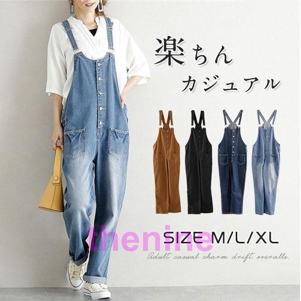 オーバーオール レディース 黒 デニム サロペット パンツ コーデ 20代 40代 春秋 ワイドパンツ ワンピースタイプ おしゃれ ゆったり 30代 50代