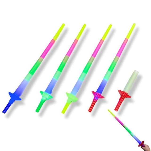 伸ばすとなんと 52cm !遊びの主役はキミだ!「 光る ソード ピカピカ 伸びる 剣 12個 セット 」です。下に向けて振ると剣が伸びるよ♪遊ばない時は コンパクト に♪ 子供 たちが大喜びするアイテムが登場です!