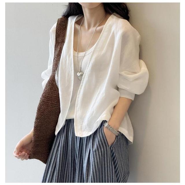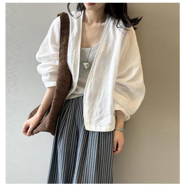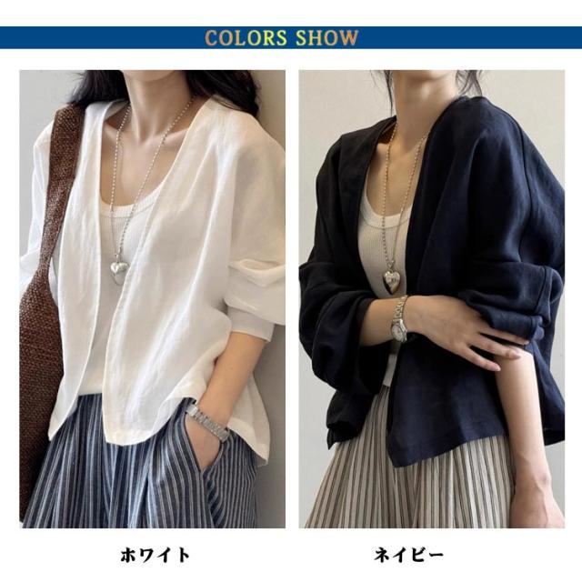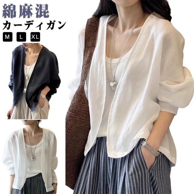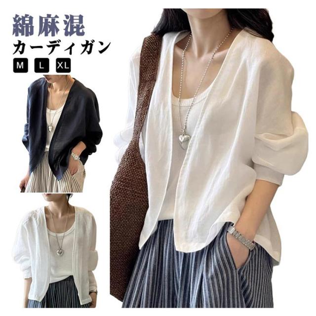 長袖 トップス 羽織 春夏 カーディガン サマーカーディガン 薄手 体型カバー ブラウス 無地 レディース ゆったり 綿麻混 カーディガン アウター uvカット パーカー 大きいサイズ 冷房対策 前開き シンプル 通勤