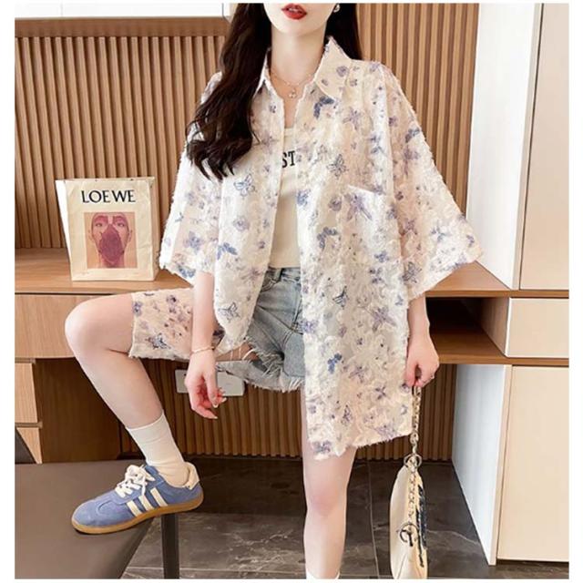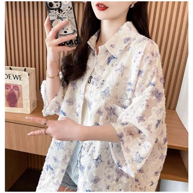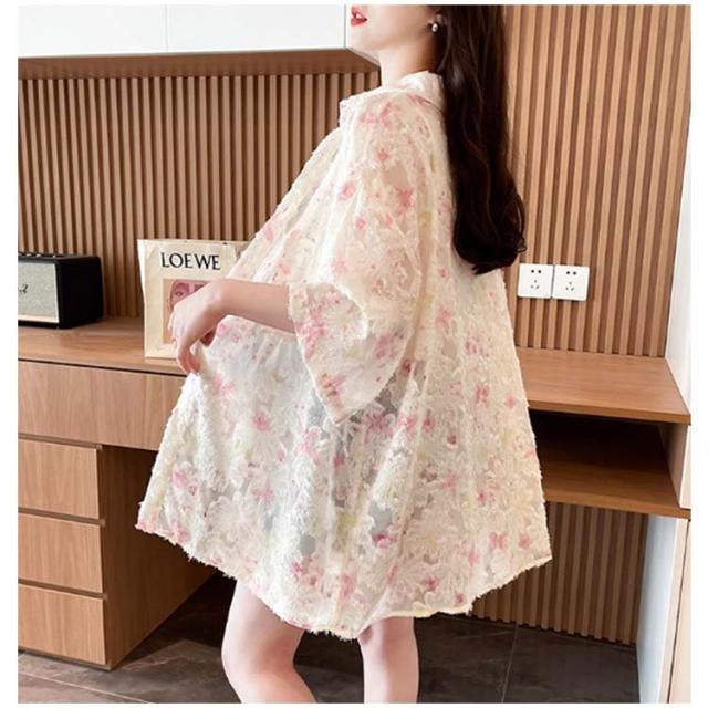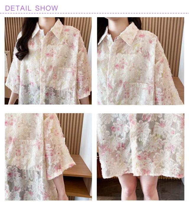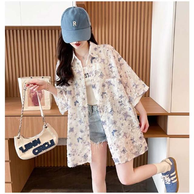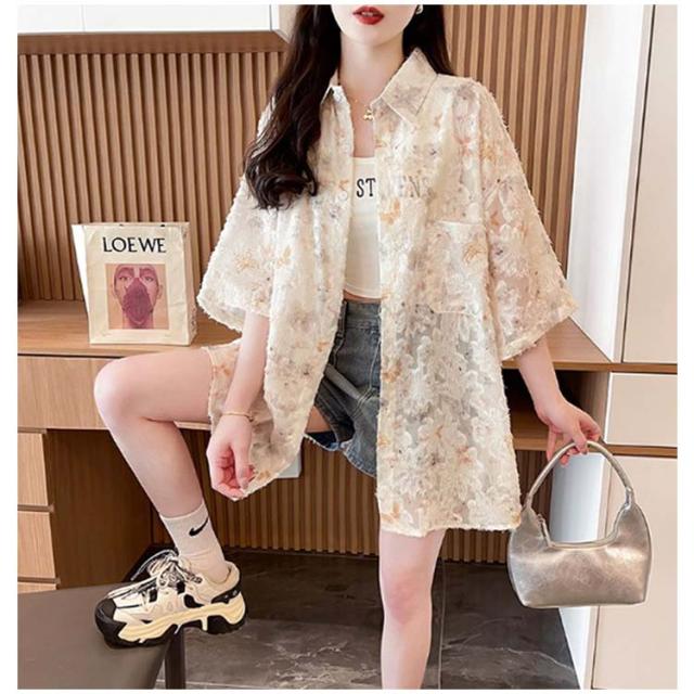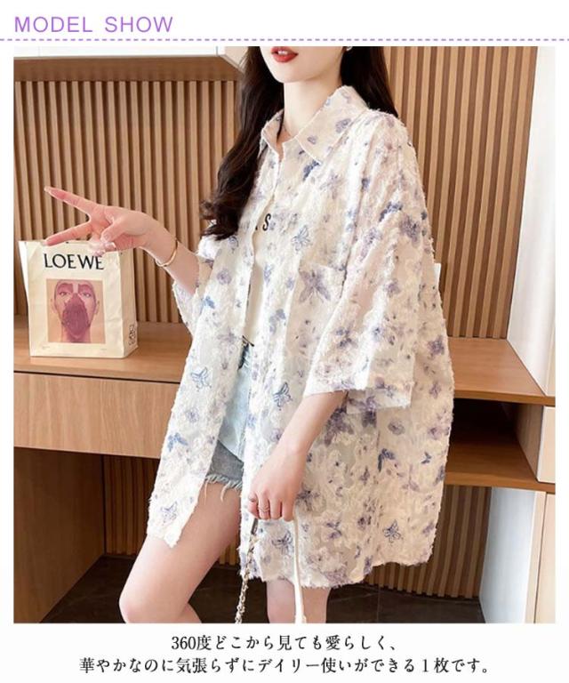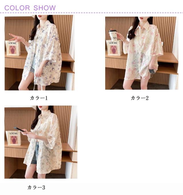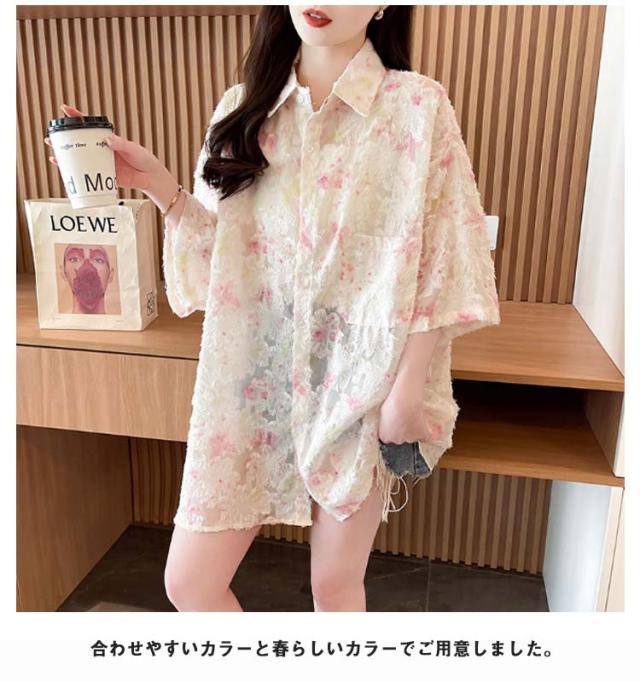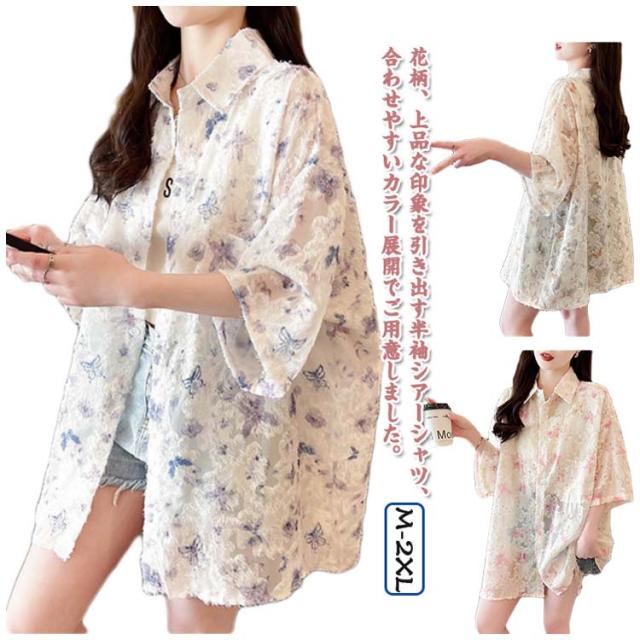 半袖ゆったり 花柄シャツ レディース 半袖シャツ シャツ 春夏 シアー シャツ カジュアルシャツ シアーシャツ シースルー 夏服 サマーシャツ 冷房対策 紫外線対策 韓国ファッション M L XL