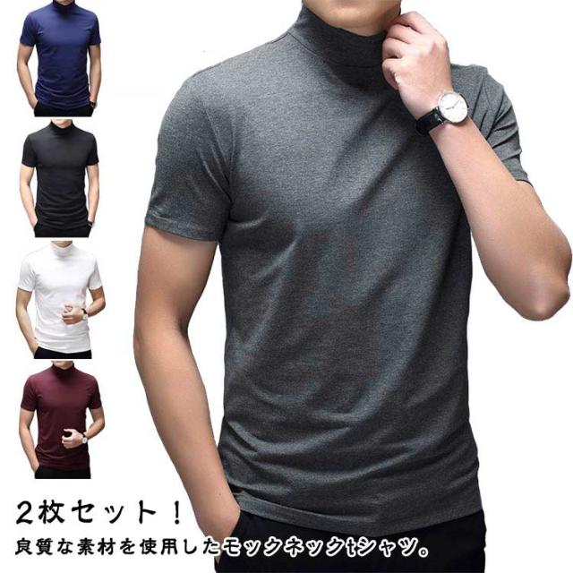 夏 tシャツ 夏服 ハイネック 2枚セット 半袖 送料無料 無地 モックネック ハイネック ゴルフtシャツ ハイネック tシャツ ティーシャツ メンズ ゴルフウェア カジュアル シンプル ビジネス オフィス 普段着 夏