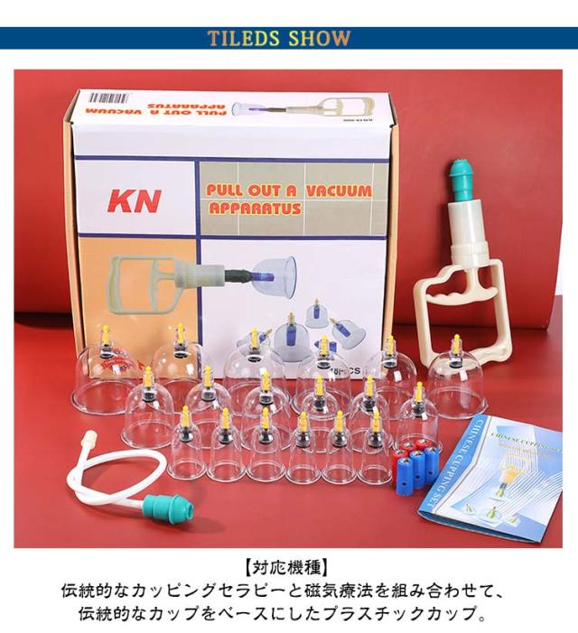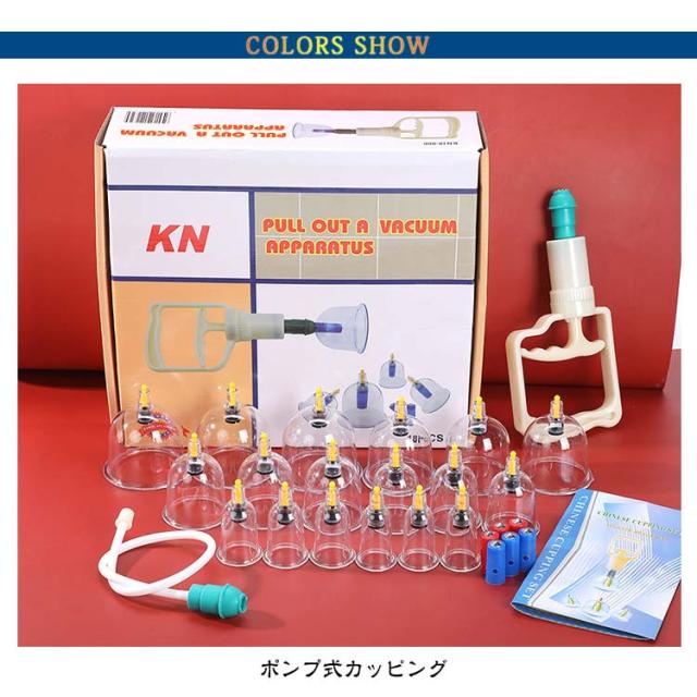 | 18個セット カッピング 吸い玉 【対応機種】 伝統的なカッピングセラピーと磁気療法を組み合わせて、伝統的なカップをベースにしたプラスチックカップ。 中国のカップのセット空の体の健康な医療吸引マッサージポンプ療法。自宅での自宅療養に使用するのが簡単で安全です。1日15分〜30分、肩や腰など疲れ、こりのあるところを吸引してください。 材料:非毒性の医療グレードの耐久性のあるプラスチック。ホースが付いているので多少のコツはいりますが背中も一人で行うことが出来ます。 プラスチック製のカップなので、割れやすいガラス製に比べ安全に使用できます。カップはお湯で沸かして消毒が可能、いつもきれいにご使用頂けます。 | |