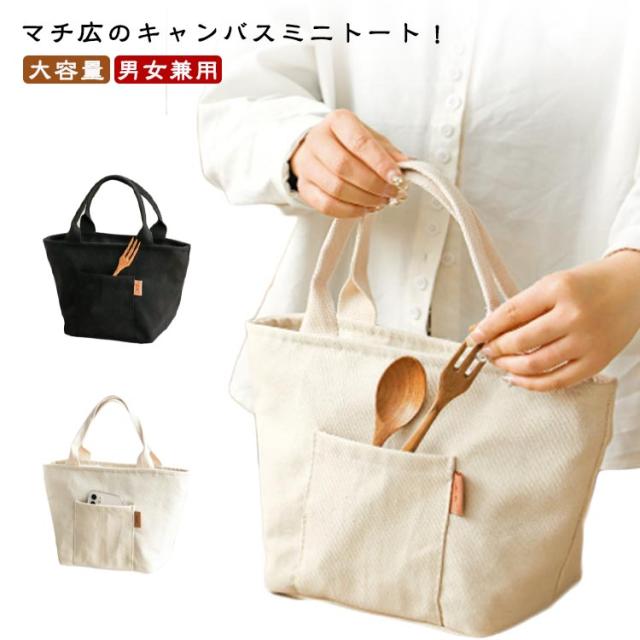 | マチ広のキャンバスミニトート! 内側にはアルミシートと断熱材で保冷、保温、防水効果があります。 スマホ、マイボトル、お弁当、ハンカチ、イヤホン、リップクリーム、 ハンドクリームなど見た目以上の収納力でこれだけでお出かけOK! サッと持ち出せるそんな気軽さが毎日使いたくなる魅力です! たっぷり収納の秘密はマチの広さ! | |