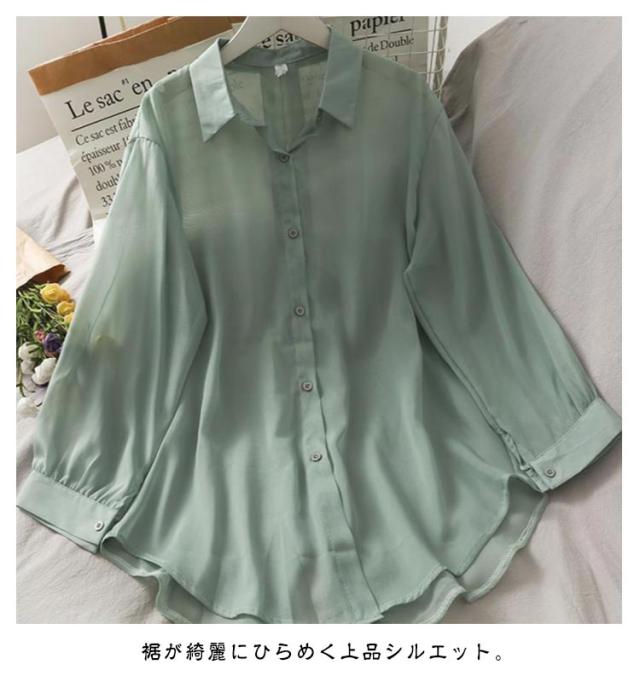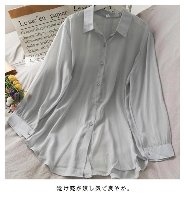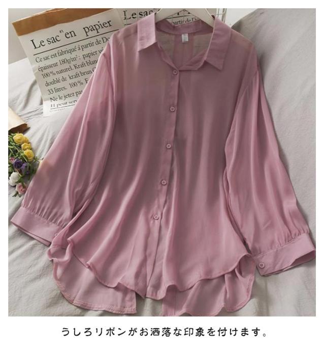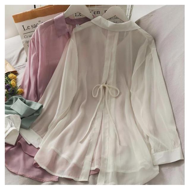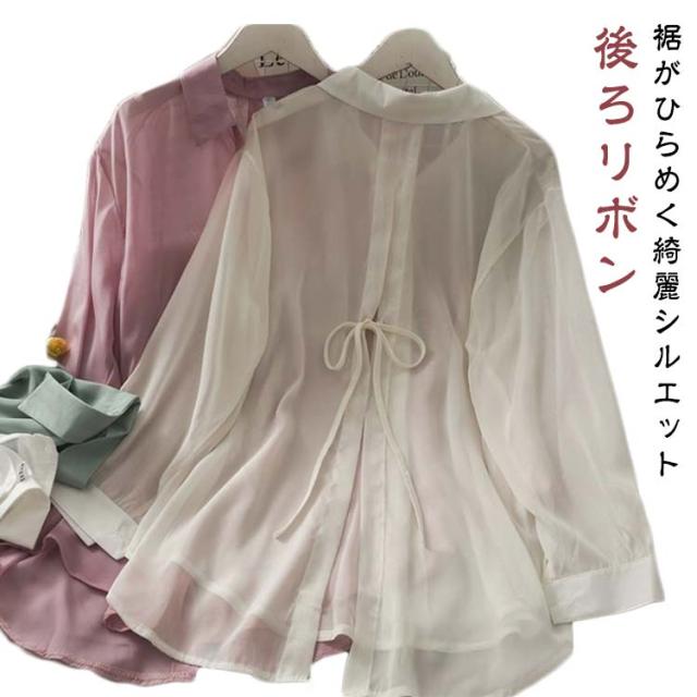 ゆったり ふんわり シースルシャツ 後ろリボン 日焼け防止 ぽわん袖 後ろリボン 裾がひらめく綺麗シルエット リラックス ブラウス ブラウス 透け感シースルー エアリー 羽織り 涼しい UV対策 シアーシャツ レディース シャツ トップス ブラウス 長袖