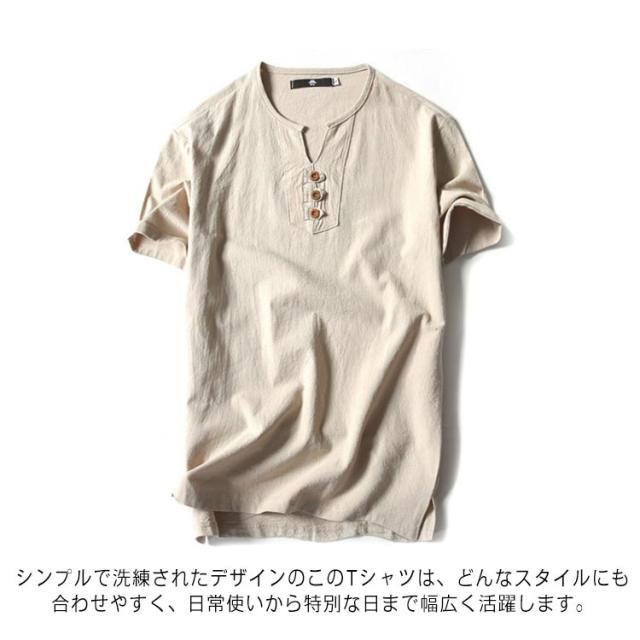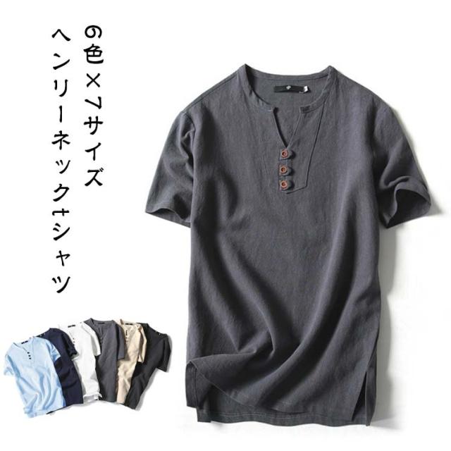 無地 ヘンリーネック tシャツ 夏 vネック vネック ヘンリーネックtシャツ おしゃれ 夏物 大きいサイズ 半袖 ティーシャツ 半袖Tシャツ シンプル 綿 コットン ボタン コットン ヘンリーネックtシャツ メンズファッション 白tシャツ 父の日