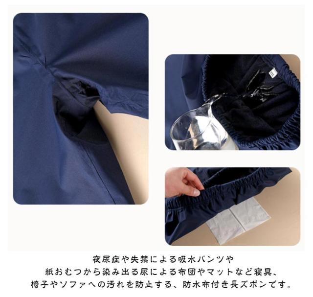 | 大人用のおねしょズボン。 綿の生地で柔軟で快適、吸湿効果は明らかで、肌にやさしい刺激がありません。 ウエスト部分はアジャスター調整でき、ストレスフリー。調整可能なゴムウエストなので、着脱ぎも簡単でオムツ交換も楽に行えます。 夜尿症や失禁による吸水パンツや紙おむつから染み出る尿による布団やマットなど寝具、椅子やソファへの汚れを防止する、防水布付き長ズボンです。 おねしょはもちろん、介護用や入院時で介助が必要な時、さらに生理中の漏れ心配な女性の方にもおススメです。 3層保護で漏れにくい!外側に肌さわりのいい綿、中層にTPU防水フィルムが内蔵、直接肌に触るの側には柔らかくもふもふ触感の生地を採用します。安心しておやすみいただけます。 ウエストの部分には、リング付きゴム・ドローコード仕様でしっかりフィットします。体型問わず、心地よく利用できます! | |