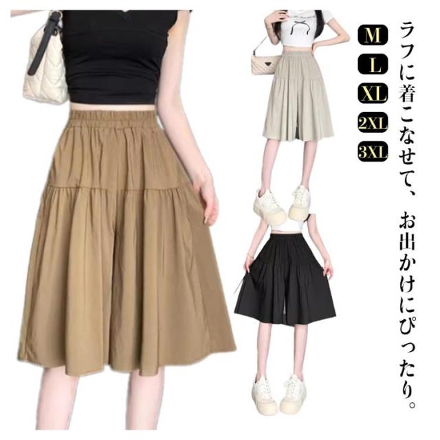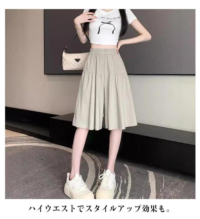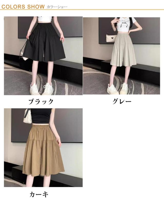 レディース ショートパンツ 五分丈 ガウチョパンツ キュロット 夏 キュロット 薄手 ゆったり ハイウエスト 膝丈 大人 カジュアル スカーチョ ワイドパンツ 無地 着?せ スカート風 きれいめ おしゃれ キュロットパンツ
