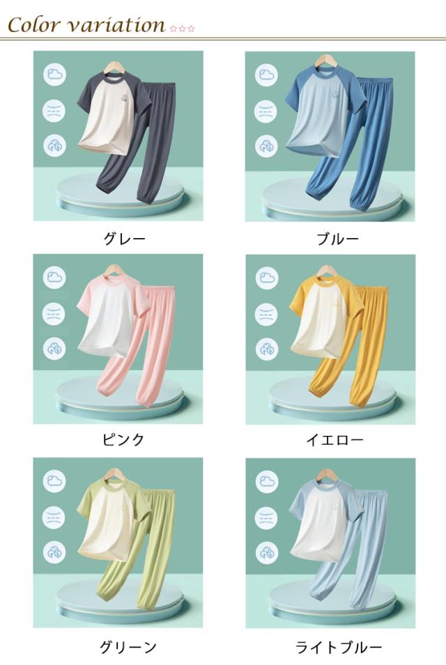 | キッズ パジャマ 夏用ルームウェア 100-170cm 吸汗速乾素材で汗をかいてもすぐに乾き、常に爽やかな着心地 サラリと薄手で軽い着心地、優れた通気性で寝苦しさも解消 パンツはウエスト総ゴムで着脱がラク | |