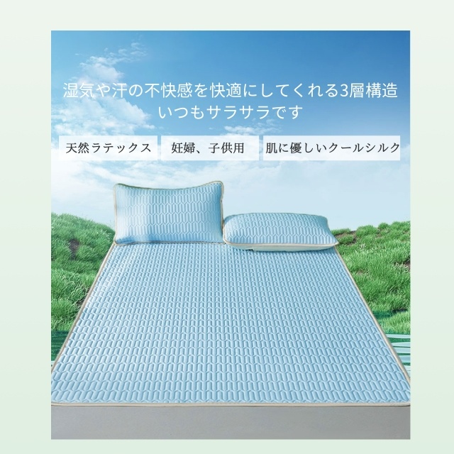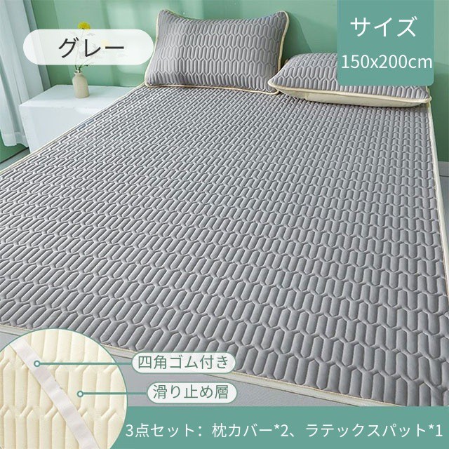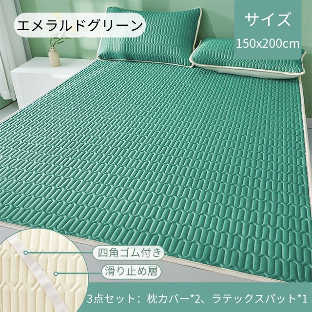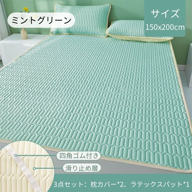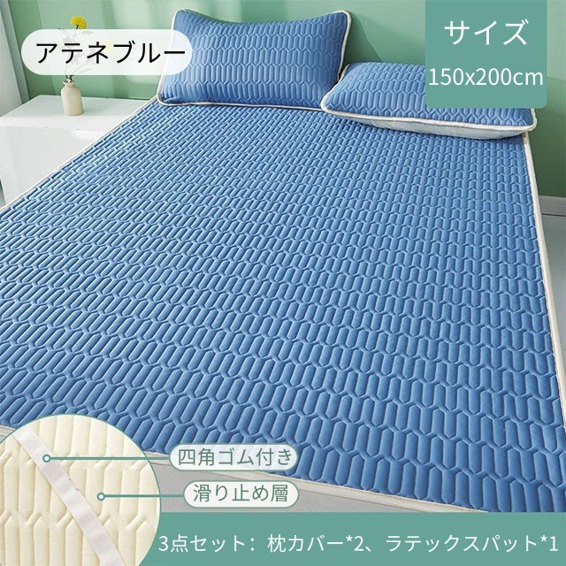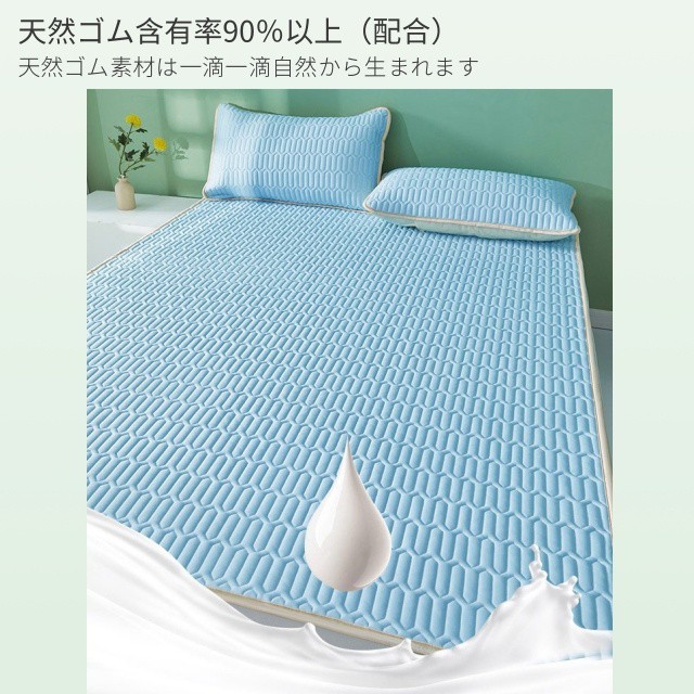 ラテックス 3点セット ボックスシーツ 天然ラテックスパッド 接触冷感 涼し 夏 冷房 ベッドパッド 敷きパッド シングル セミダブル ダブル 折りたたみ 厚手 枕カバー 洗える 防ダニ マットレス
