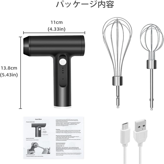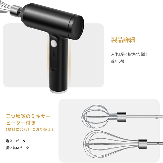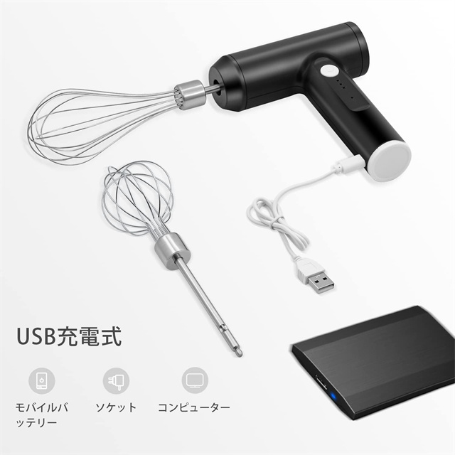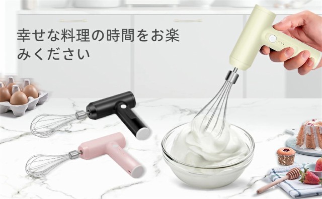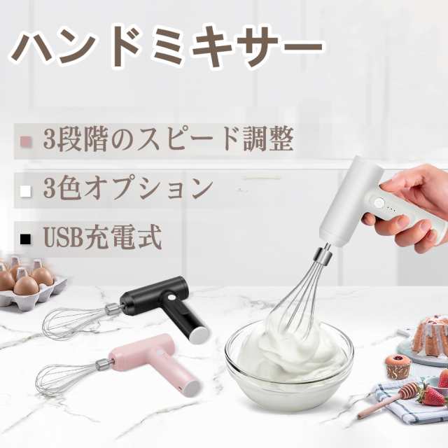 ハンドミキサー 小型 泡立て器 電動 コードレス 3段階スピード調節 ミキサー 充電式 キッチン用 コンパクト 速い 軽い 強力 ホイッパー ホイップ クリーム ケーキ 安い おすすめ お菓子作り 誕生日 バレンタイン ギフト プレゼント