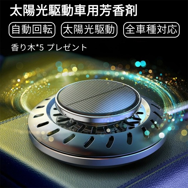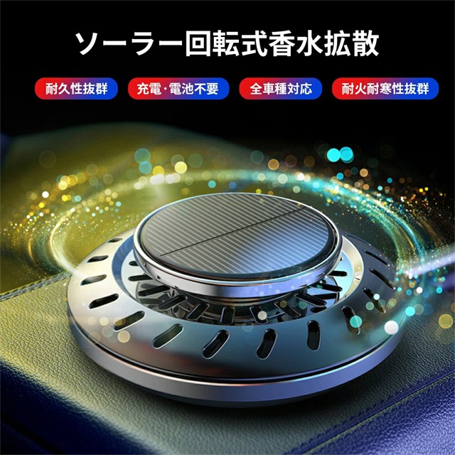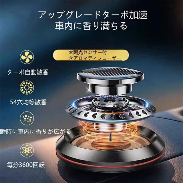 カーフレグランス 車 芳香剤 車用芳香剤 アロマディフューザー 長持車用芳香剤 無音自動回転 太陽エネルギー 充電不要