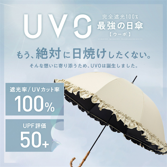 お気に入りの傘を長くご愛用頂きたい想いから、UVOは耐久性も追求。 特殊構造生地を使用しているため、破れたりひどく傷がつかない限り、完全遮光100%の効果は半永久的に持続します。