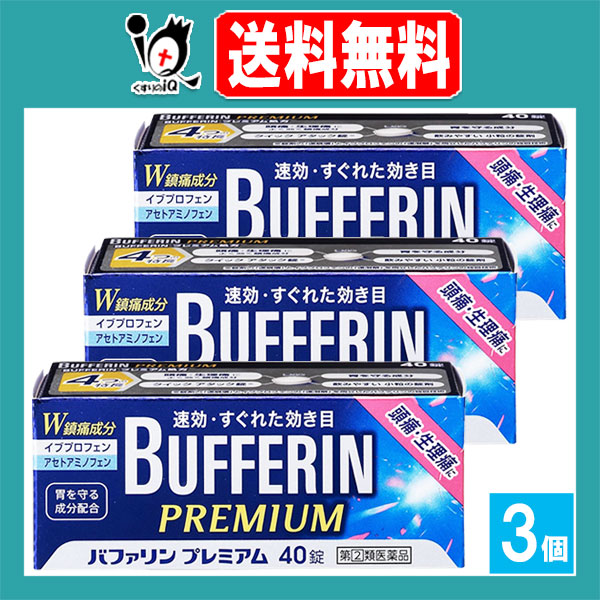 【指定第2類医薬品】★バファリンプレミアム 40錠×3個セット【LION ライオン】速攻・すぐれた効き目で胃にやさしい 解熱鎮痛薬 つらい頭痛に 歯痛・生理痛・発熱 イブプロフェン・アセトアミノフェン配合