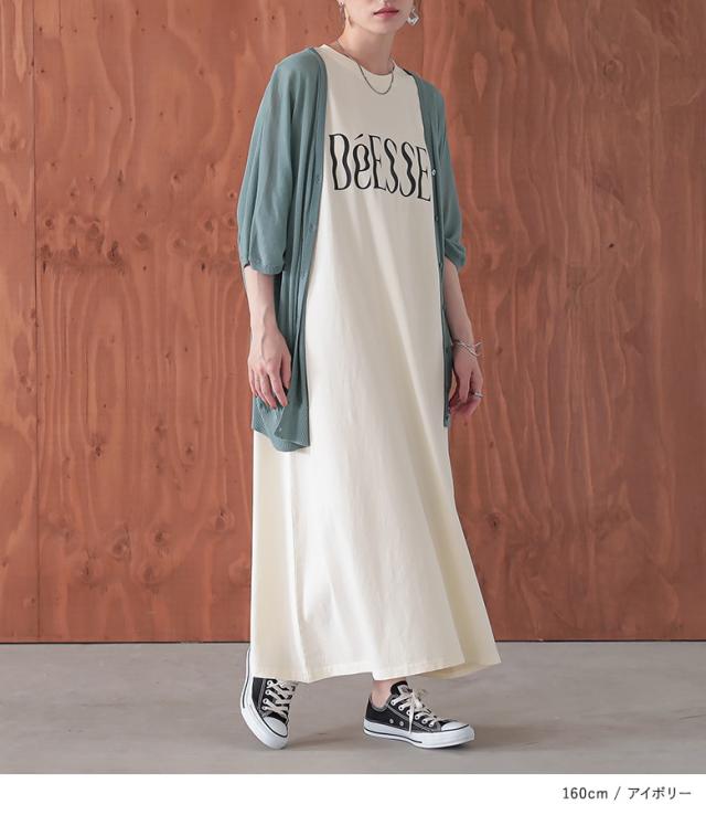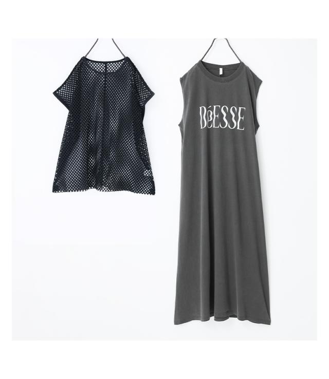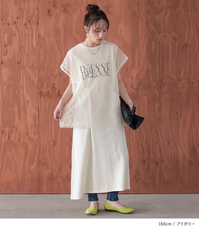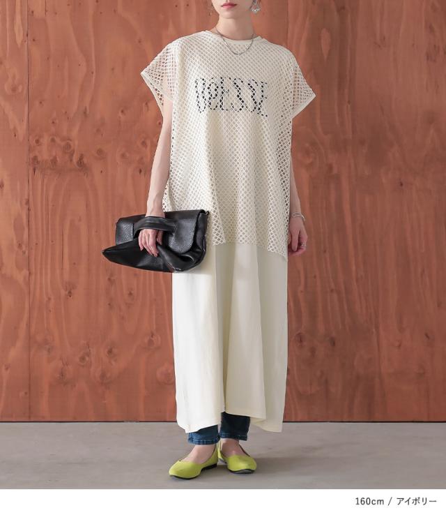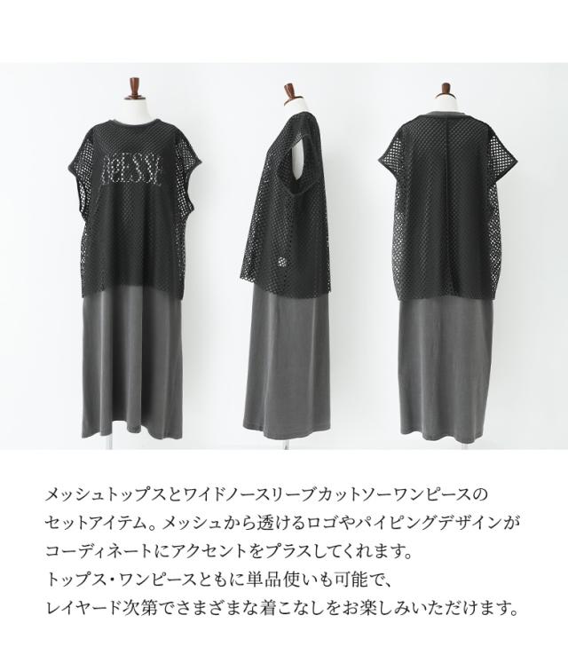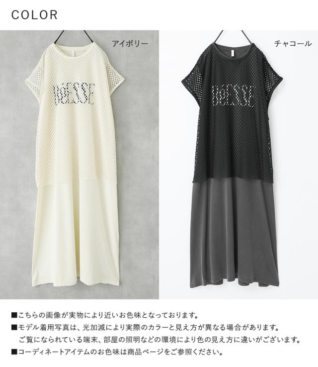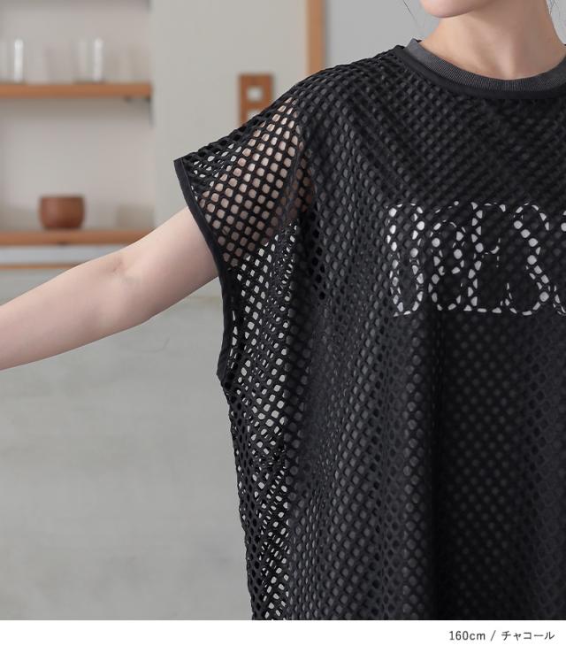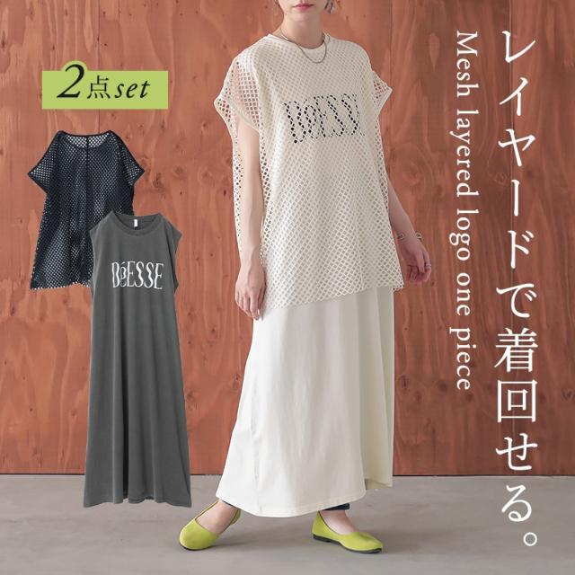 最大1000円オフ26日10時迄 『メッシュレイヤードロゴカットワンピース』【メール便不可】【30】[カットワンピース メッシュトップス 半袖 ノースリーブ レディース ワンピ Tシャツ カットソー 2点セット レイヤード 着回し 春 夏]