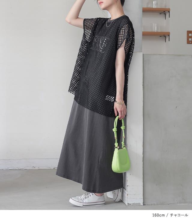 | staff:A/156.5cm B104 W82 H103 【普段着用】 Tops: L/LL Bottoms: L/LL | 【フリーサイズ】 着丈:くるぶしが見える位 腕周り:ややゆったり バスト:ジャスト ウエスト:ややゆったり ヒップ:ややゆったり 全体:ややゆったり メッシュトップスは全体的にゆったり、ワンピースは程よいゆとりでした。 |