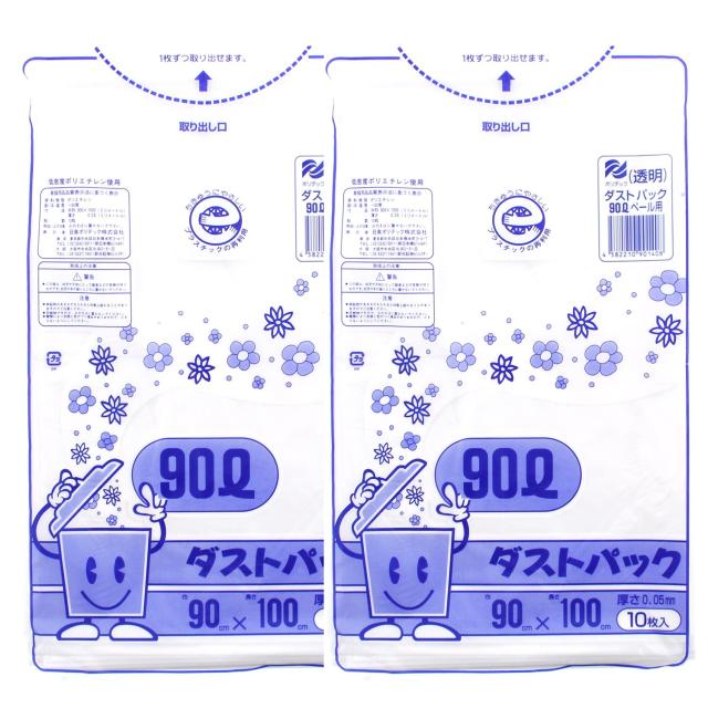 日泉ポリテック(Nissen Polytec) ゴミ袋 ゴミ箱用アクセサリ 透明 90L ダストパック 厚手0.05mm 日本製 10枚入 2個セット