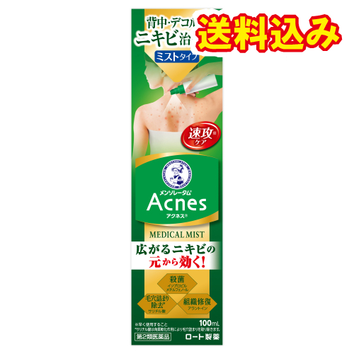 | 背中やデコルテで広がるニキビの元から効く、メンソレータムアクネス25メディカルミストb。 イソプロピルメチルフェノール(殺菌成分)がアクネ菌を殺菌!アラントイン(組織修復成分)が傷ついた皮膚組織の修復を促進。 サリチル酸(角質軟化作用)が毛穴詰まりを除去し、ニキビを治療します。無着色。薬効感のある爽やかな香り。 手の届きにくい背中などにも使いやすいミストタイプ。ボトルを逆さまにしても使えます。 |