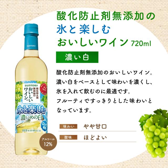・サントリー 氷と楽しむおいしいワイン。(酸化防止剤無添加)濃い白 ×2本