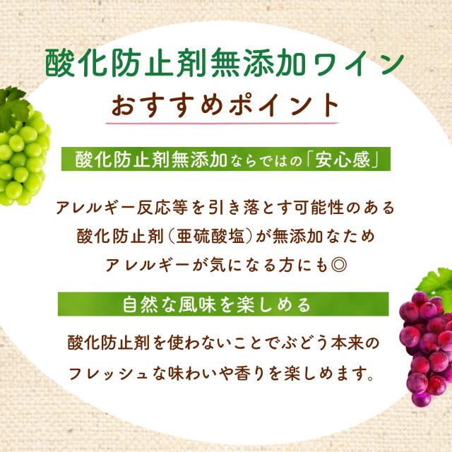 酸化防止剤を使用しないことで、ぶどう本来の味わいや香りを楽しむことができます。