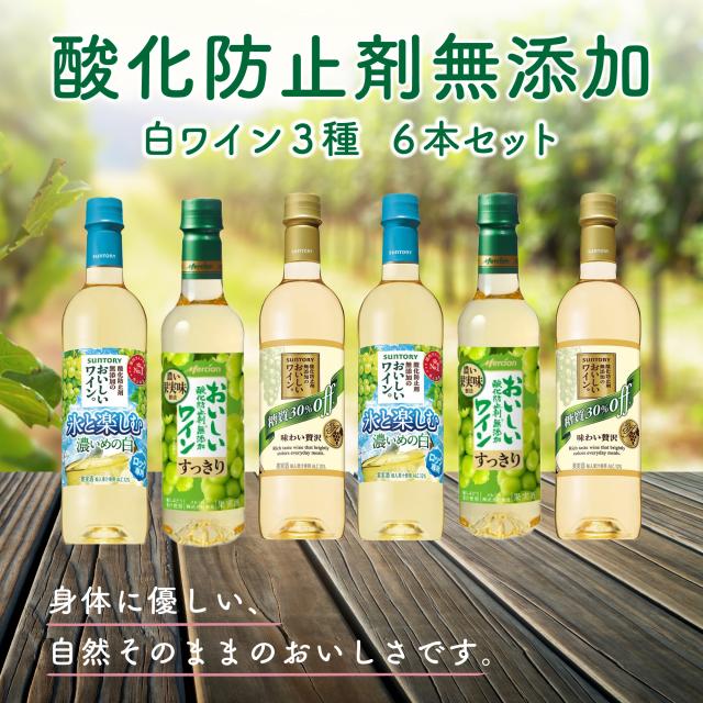 酸化防止剤無添加 白ワイン 720ml 3種 6本セット 飲み比べ 詰め合わせ サントリー メルシャン 白ワインセット ギフト プレゼント